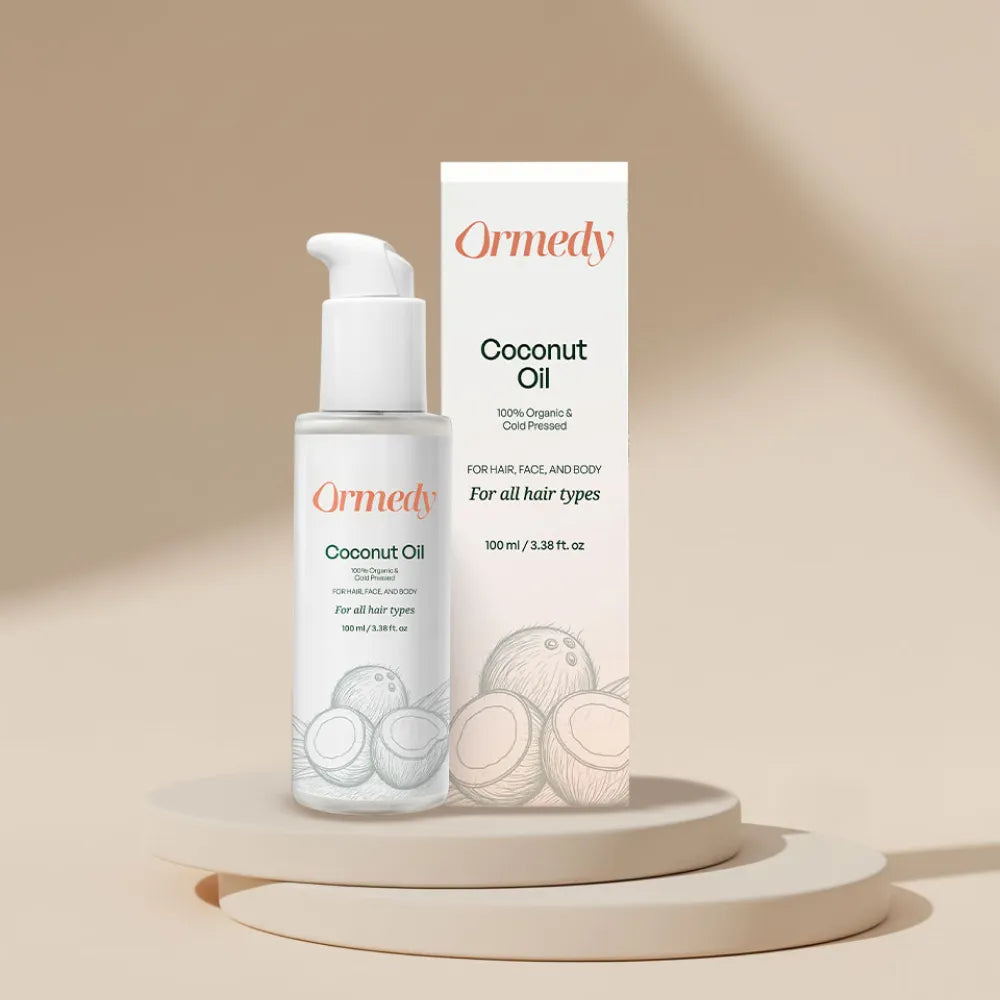 Gently massage Ormedy Coconut Hair Oil into your hair before shampooing, or leave it on overnight for deep, restorative nourishment.